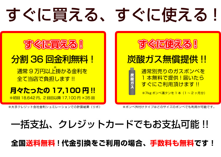 炭酸泉装置を選ぶ際に多くの方が基準とされるのが、価格・濃度・信頼性です。その基準について他社製品とミラクルソーダバスシリーズを比較してみました。