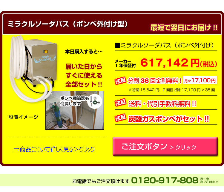 炭酸泉装置ミラクルソーダバス ボンベ外付けタイプを購入